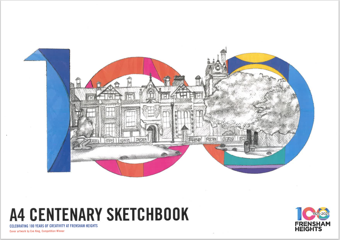 Celebrate 100 years of creativity and achievement with our exclusive A4 Centenary Sketchbook, featuring a unique front cover designed by a talented Frensham student.